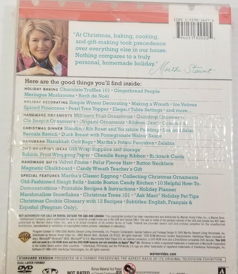 Martha Stewart Holidays: Homemade Holidays (DVD, 2005) NEW SEALED