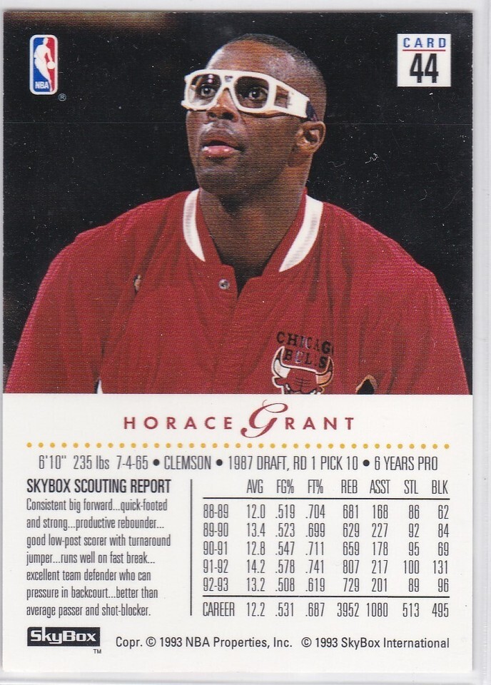 M) 1993-94 Skybox Basketball Trading Card - Horace Grant #44
