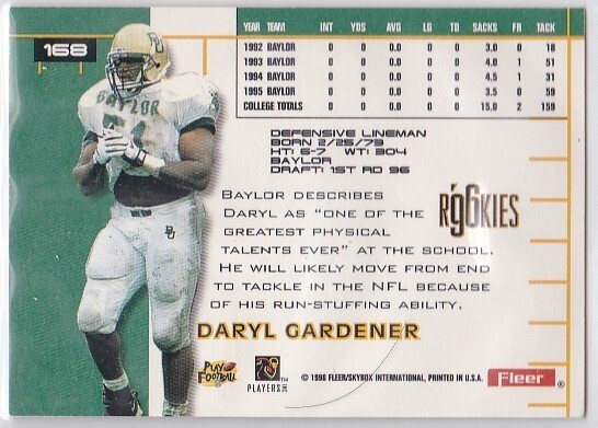 M) 1996 Fleer Ultra Football Trading Card - Daryl Gardener #168