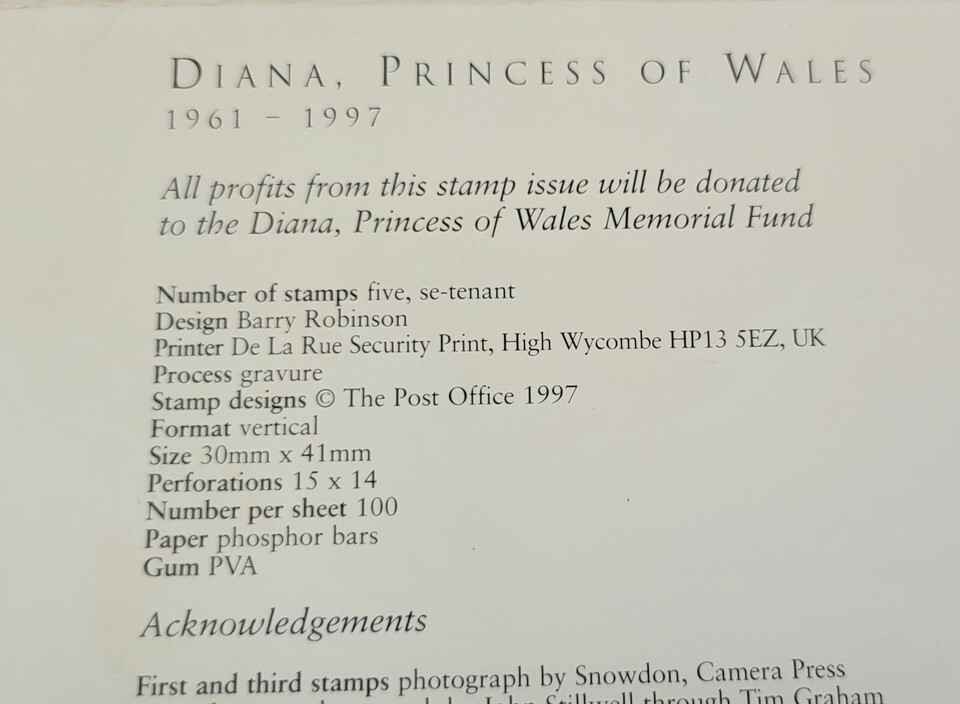 Diana Princess of Wales Commemorative Royal Mail Mint Stamps