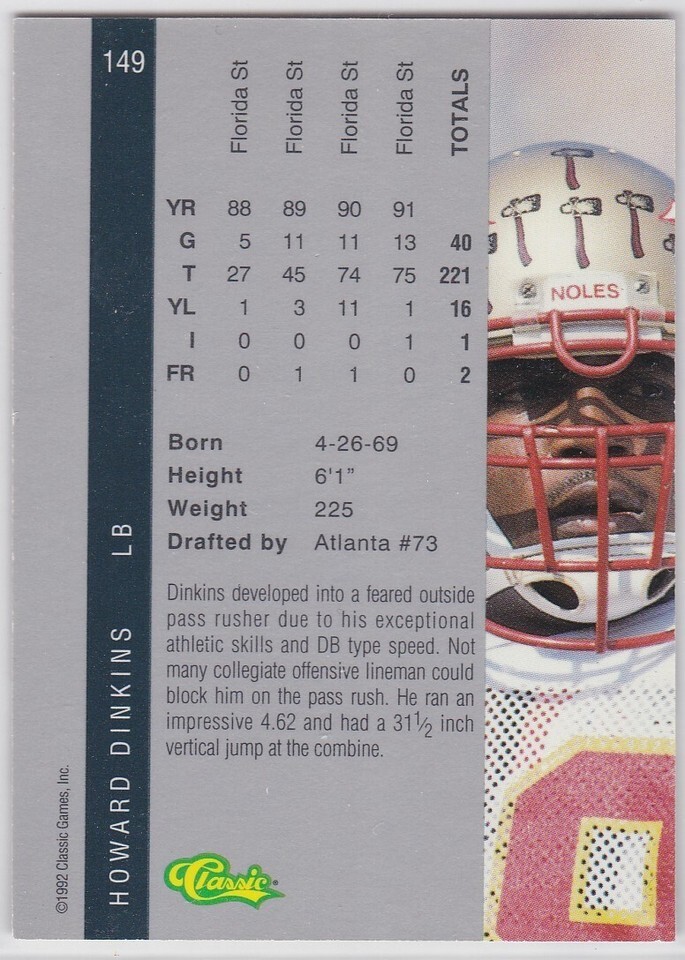 M) 1992 Classic Four Sport Trading Card Howard Dinkins #149