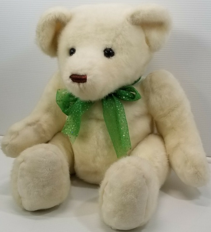 AG) Vintage Large Cuddle Wit White Teddy Bear 18" Plush Stuffed Animal Toy Bow