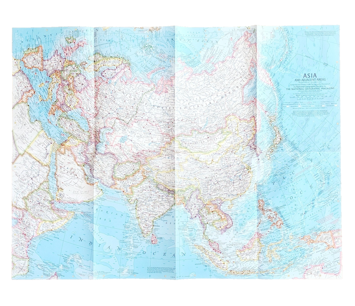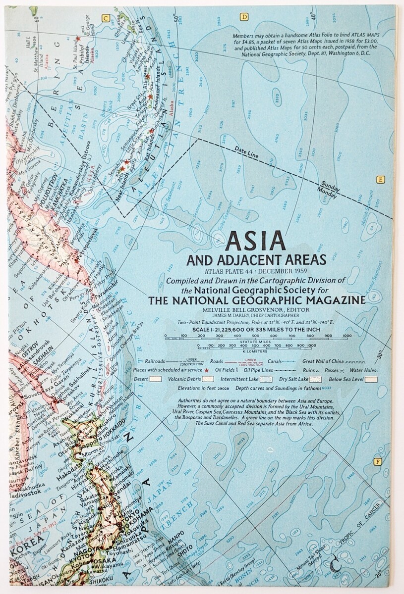 1959 Asia And Adjacent Areas Map National Geographic Antique 24.75 x 19" F13G