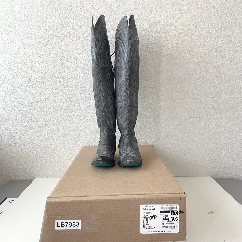 Lane LEXINGTON Over The Knee Womens Cowboy Boots 7.5 Black Western Cowgirl Tall