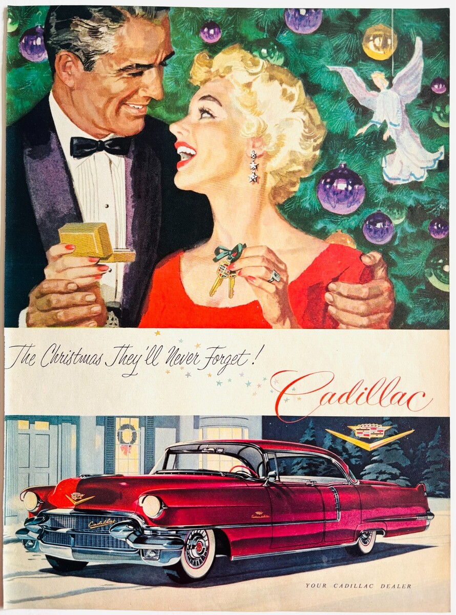 1956 Cadillac Sedan DeVille Advertisement Vintage Automobilia Christmas DWYY5