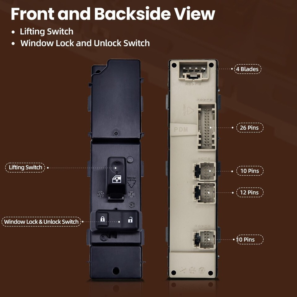 19115820 Front Right Passenger Side Power Window Switch Compatible with Cadillac Escalade, Chevy Avalanche, Silverado, Sierra, Yukon/XL 2003-2007 Replace Numbers: 10398570, 15125161, 15202854