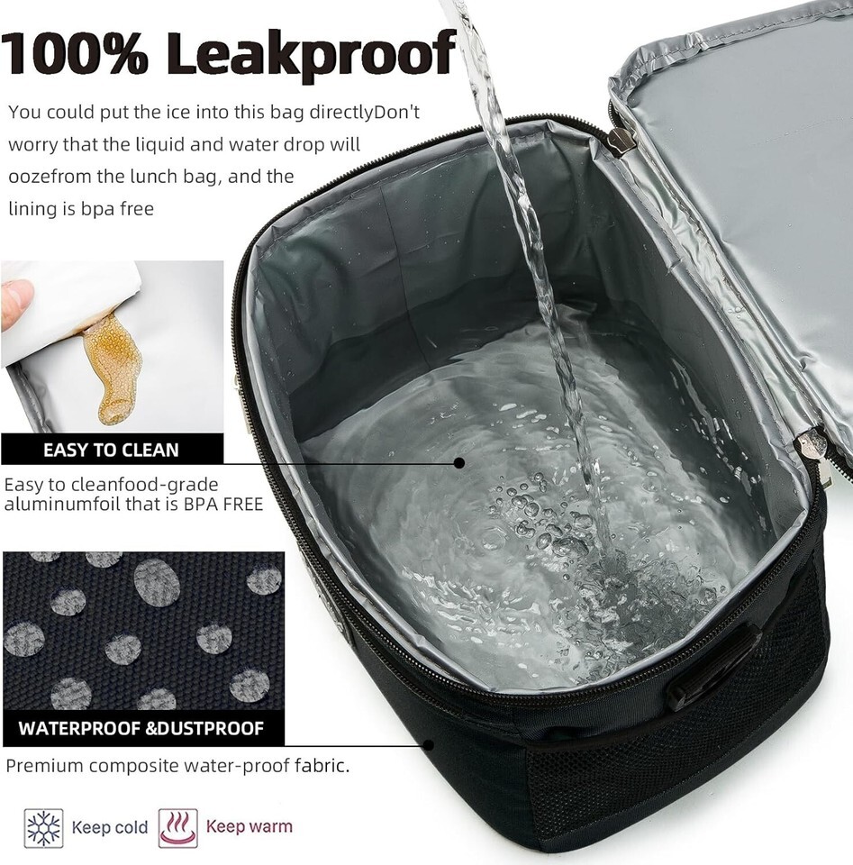 Insulation/Cooling:Insulated lunch bag for women men is lined with food-grade PEVA material, filled with thicken insulation pearl cotton inside, and 600D polyester composite fabric on the outside, small lunch cooler bag is designed with triple insulation to keep food cold/warm /Fresh for hours, even better if you put an ice pack on the bottom, perfect for meals on the go, picnics, office lunches, road trips, the beach, and more.