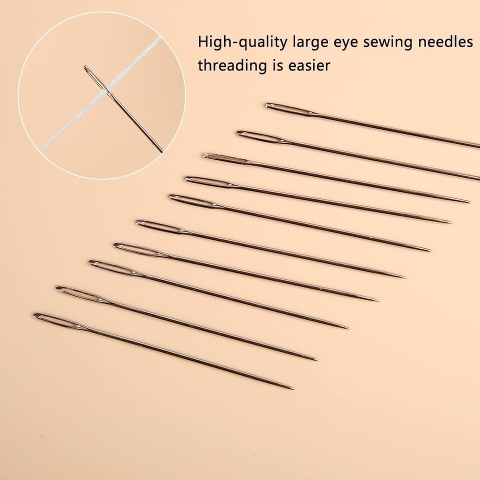Good Quality Big Eyes Needles: Our needles are made of stainless steel and really stable, they can easily get through the fabric.