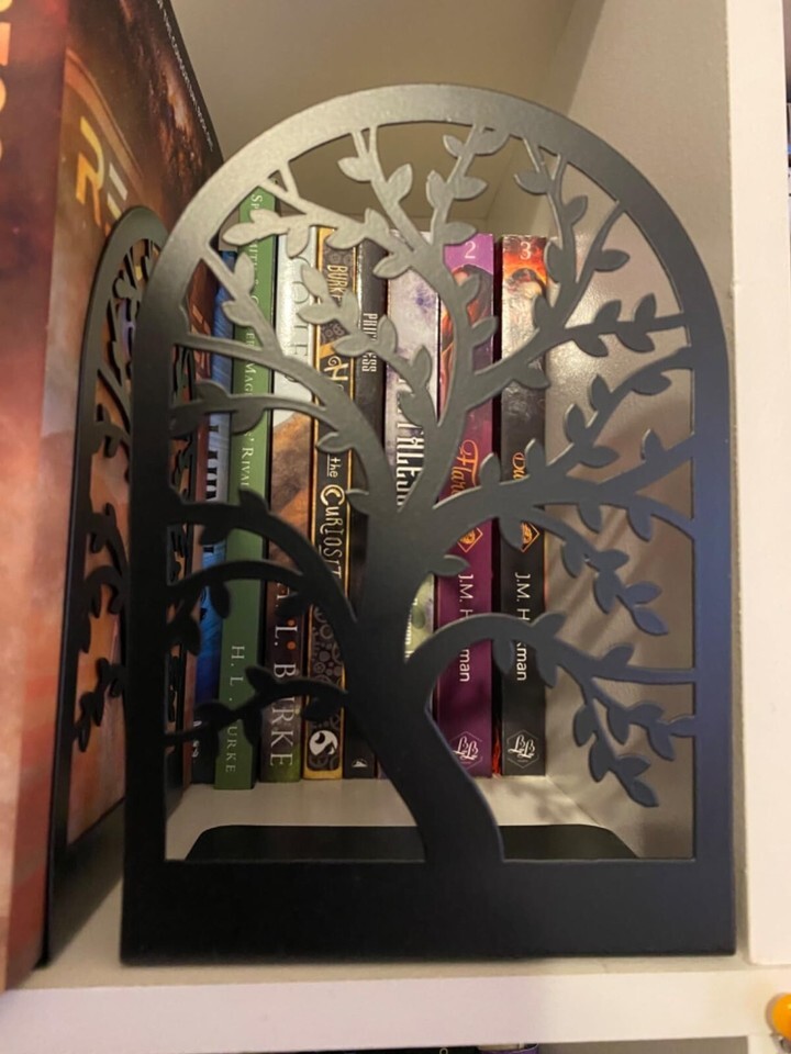 EXQUISITE GIFT -- VFINE tree of life style unique bookends for different books categorized storage, tree hollow design more decorative and design, display our favorite books happiness. Beautiful things probably few people will refuse, this exquisite and practical black bookend will a favorite gift for everyone!