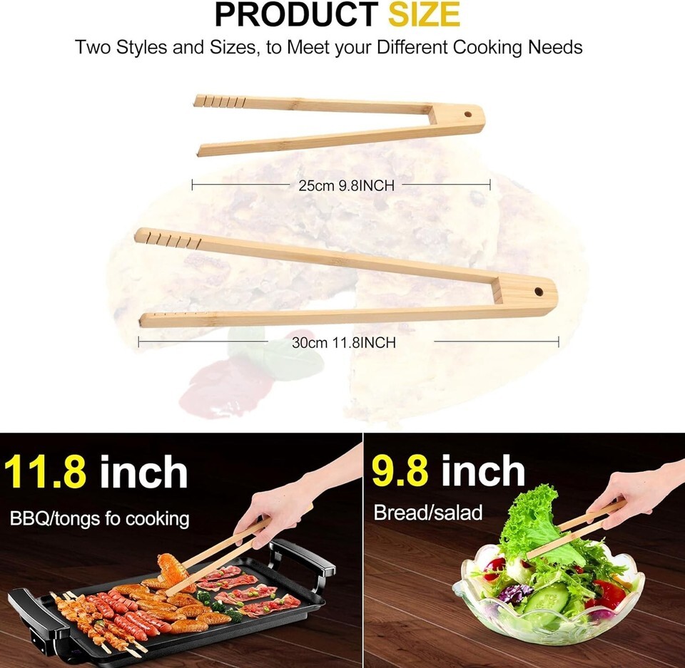 Wooden tongs for cooking come in two lengths, 11.8 inch and 9.8 inch, and can be used to enter and exit our ovens, air fryers, and to flip bacon or serve in non stick pans. This is a great addition, it has made a huge difference!