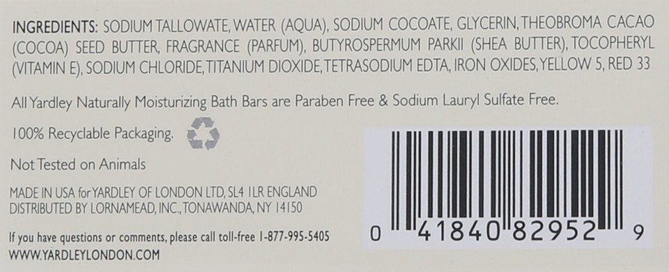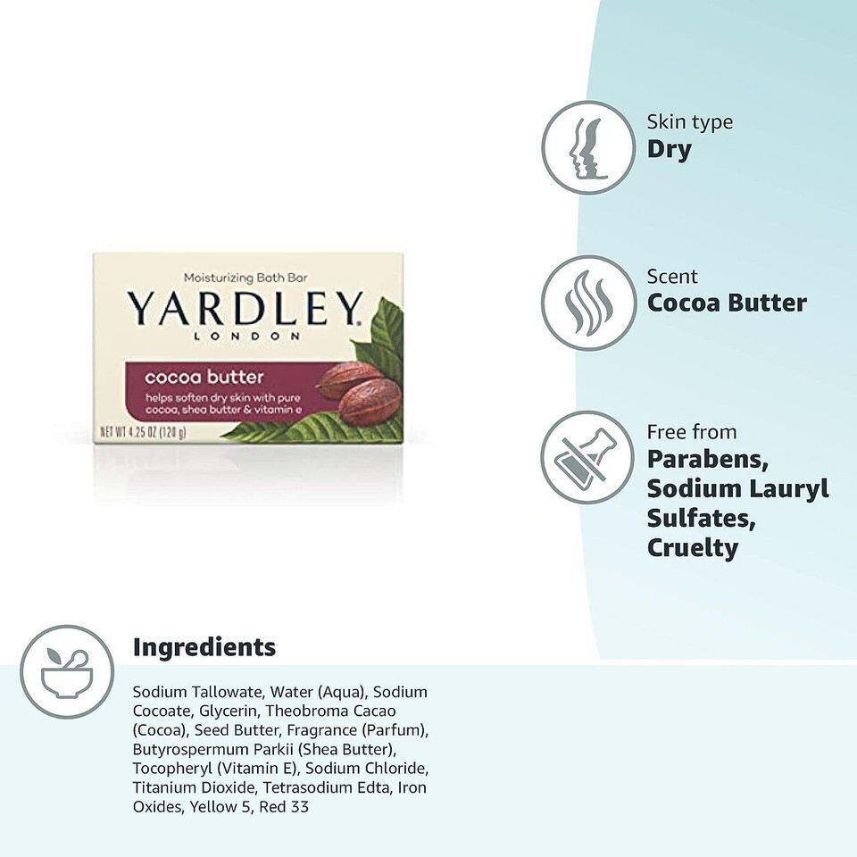 Yardley London Moisturizing Bath Soap Bar Shea Cocoa Butter Helps Soften Dry