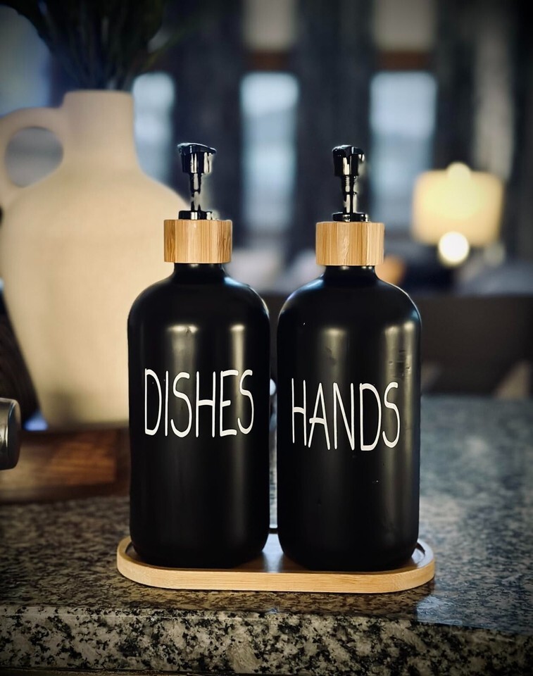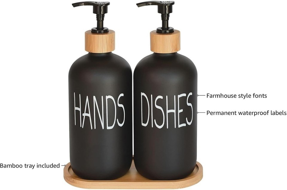 UNIQUE WATERPROOF - Different from other pump bottles: Our soap dispenser with easy to read permanent, waterproof labels. Helping you identify hand soap and dish soap easily.