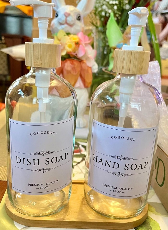 ?HIGH-QUALITY GLASS BOTTLE NOT CHEAP PLASTIC: Our soap bottles are made of high-quality glass, not cheap plastic. This soap dispenser set is safe and natural to fill with a variety of liquids repeatedly. It comes with a bamboo tray and waterproof labels.The 2cc bamboo pumps is rust-free and highly durable, providing a safe and leak-proof experience. And we offer a surprising price that offers great value for money!