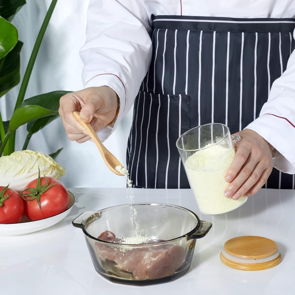 ? Glass Jar Set: Made of high-quality borosilicate glass, these jars are durable and resistant to cracking. Equipped with natural bamboo material lid and spoon, practical and simple, adding a touch of elegance to your kitchen or pantry.