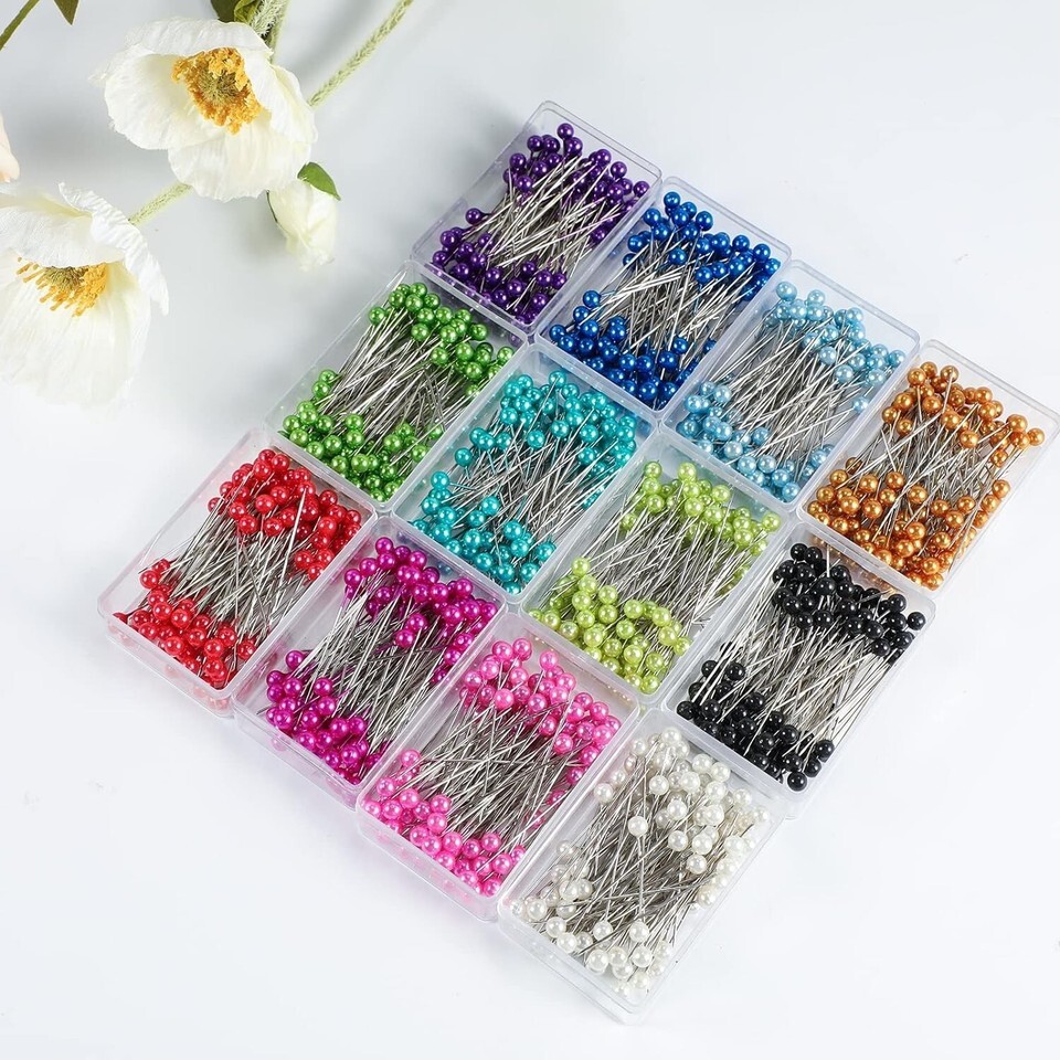 Package includes: This set includes 1200pcs pins in 12 different colors, packed in 12 clear plastic boxes, each of them contains 100pcs pins.