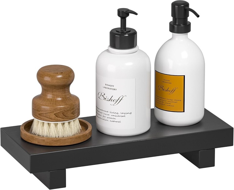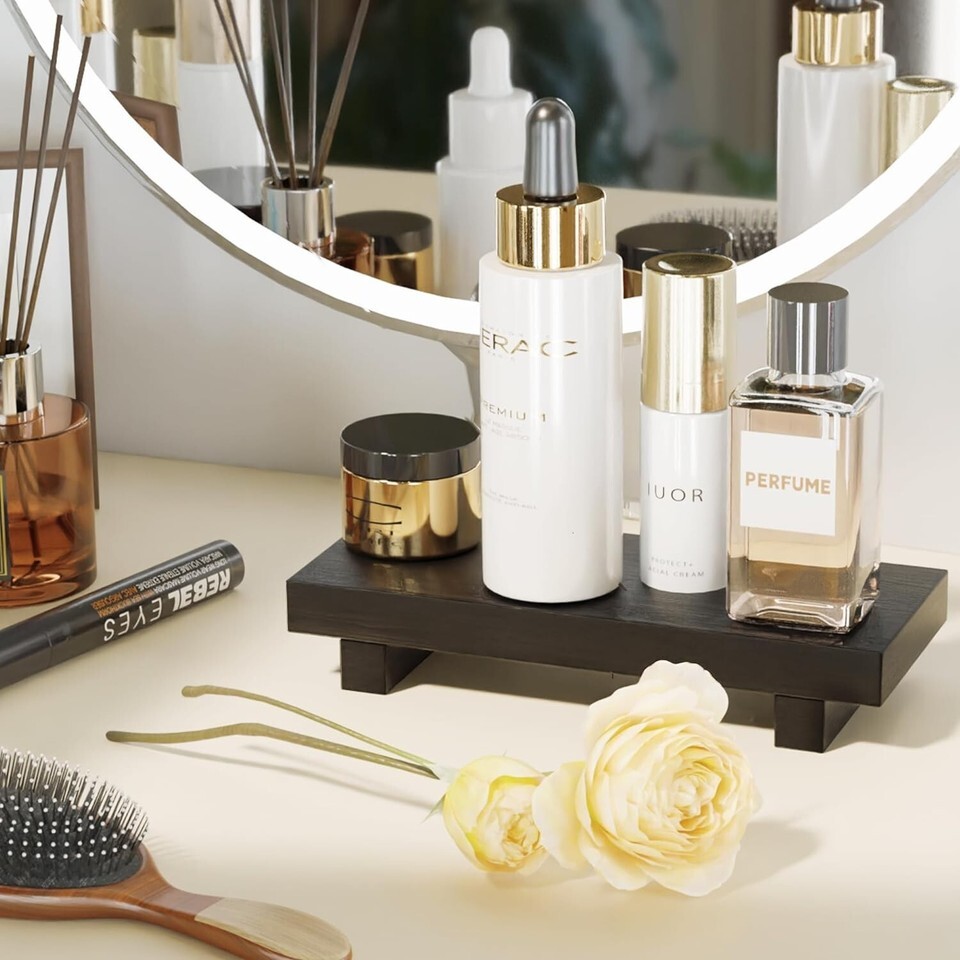 Small Bathroom Counter Tray Decor - The bathroom tray measures 8.7"(L) x 3.5"(W) x 1.6"(H), delicate and long enough without taking up too much space, effectively reducing dirt and water stains. This black pedestal stand riser is perfect for toiletries or jewelry that you do not want to place on your bathroom sink countertop. Put hand sanitizer, soap, lotion within easy reach and elevate the look of your bathroom