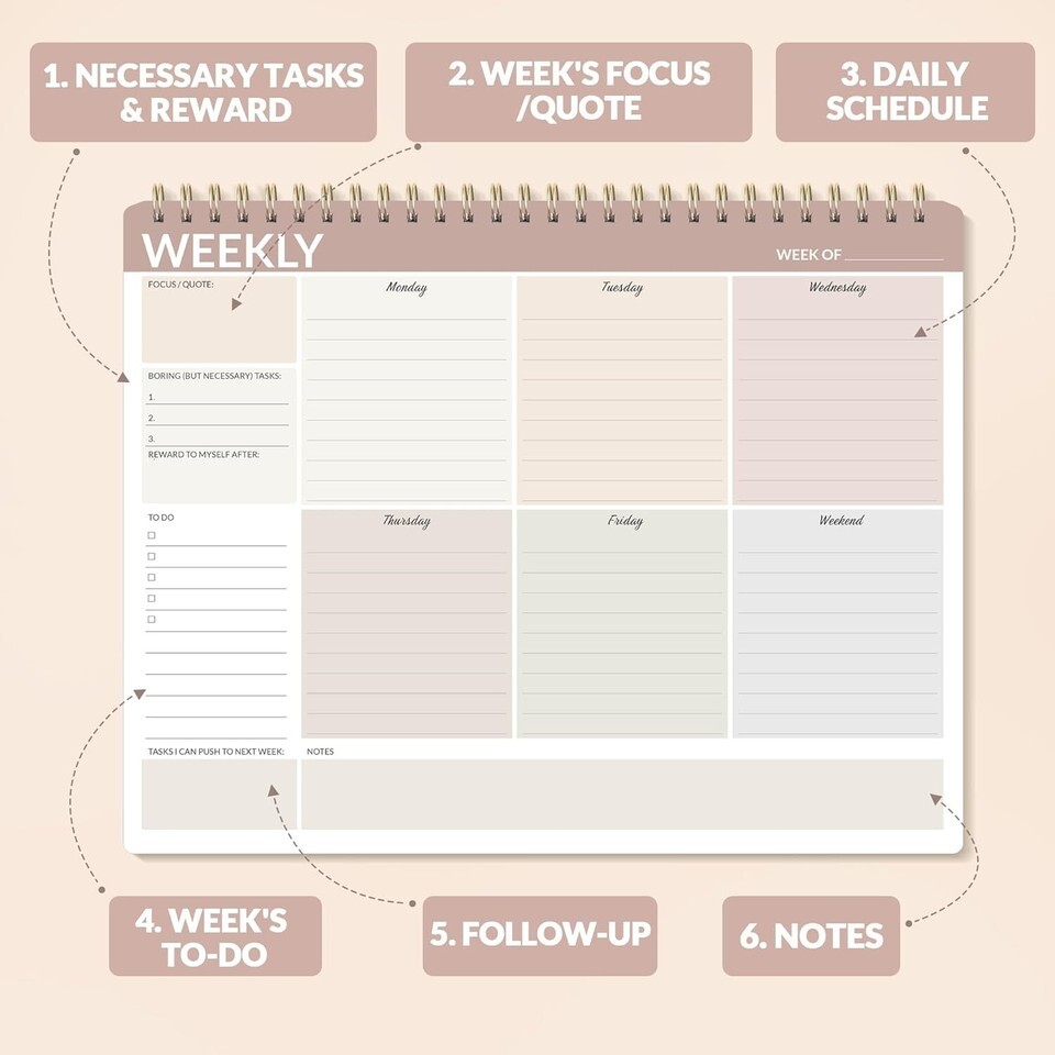 Versatile Use: The Weekly Planner is suitable for a variety of environments, including the office, home, school, and personal organizing. It serves as a dependable assistant for planning, organization, and focus. This is also an excellent choice for gift-giving.