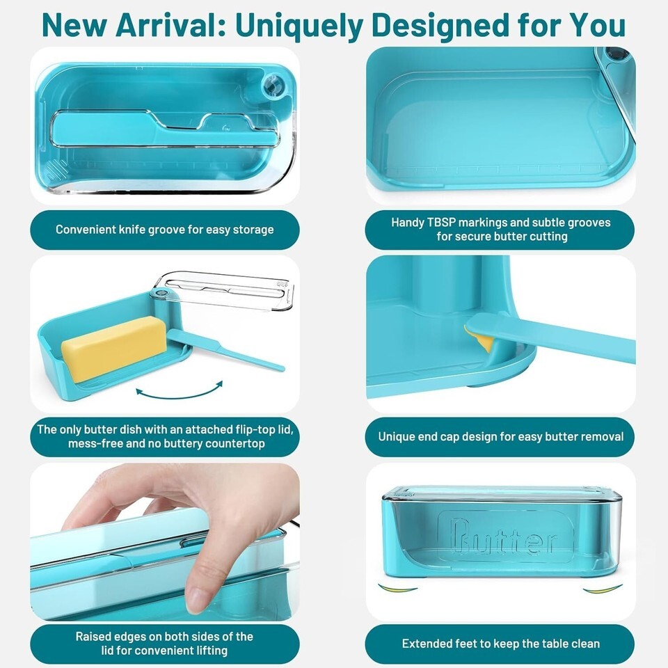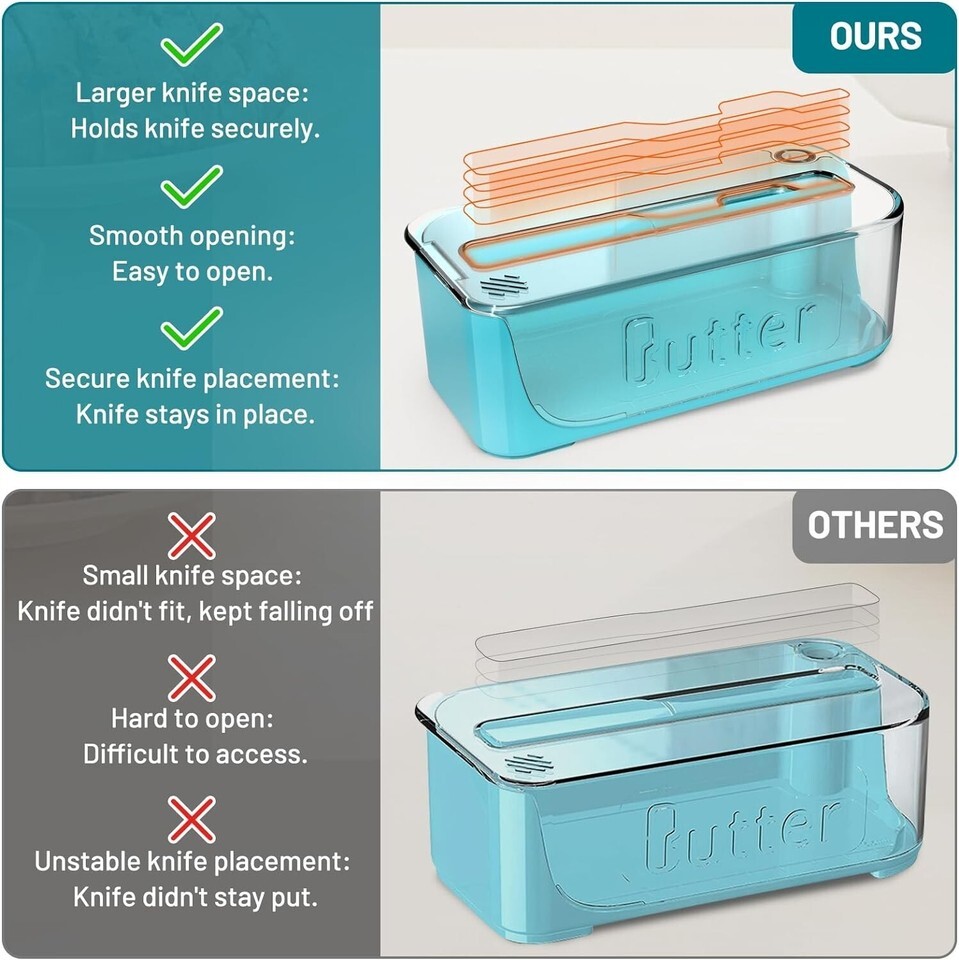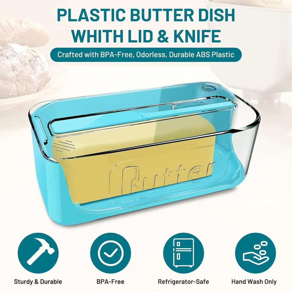 ?Premium Quality Material?Crafted from top-notch, resilient, and shatterproof BPA-free plastic, our butter container emphasizes safety and durability. Notably, if refrigeration is your choice, our innovative design excels beyond glass or ceramic butter dishes. It prevents the lid from fusing shut when butter firms up, ensuring hassle-free usability.