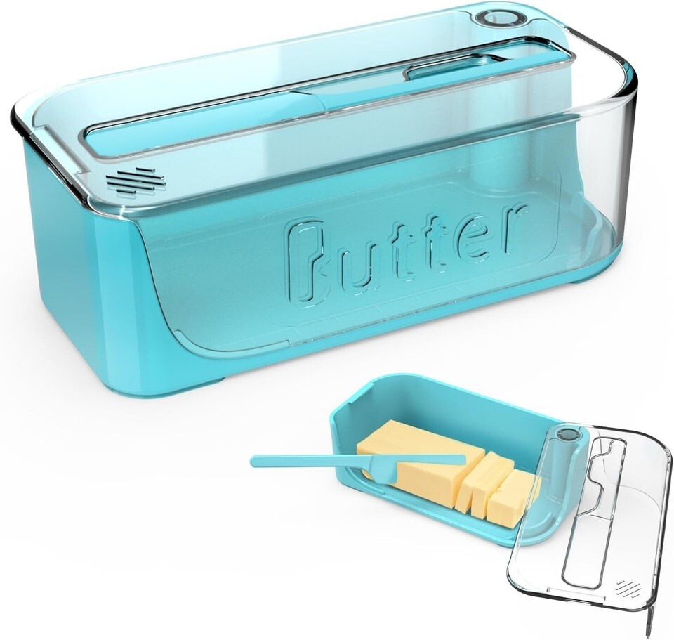 ?Ideal Dimensions? With impressive measurements of L6.73W3.46H2.28 inches, our generously-sized butter keeper perfectly fits East and West Coast, as well as European butter varieties. Its spacious width and depth offer convenient storage, while the clever interior design guarantees that butter won't come into contact with the lid's top or edges. Plus, its sleek and compact design promotes a neat and organized kitchen ambiance.