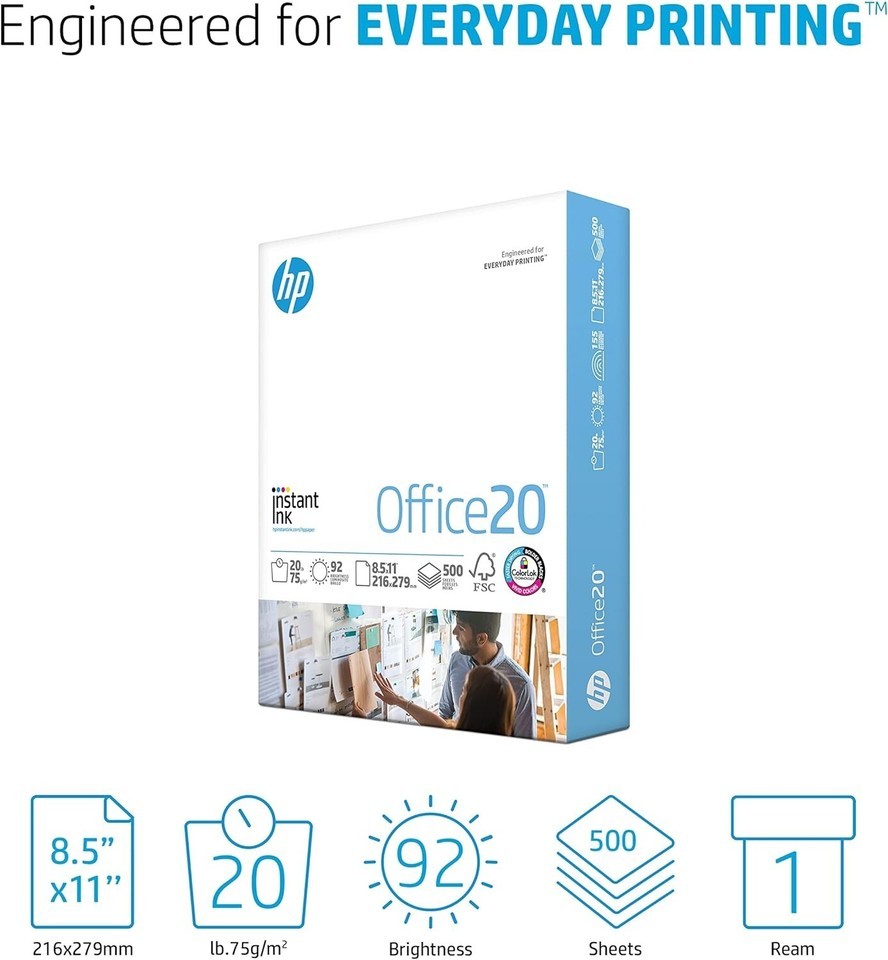 HP Papers | 8.5x11 Paper |Office 20 lb | 1 Ream - 500 Sheets | 92 Bright |