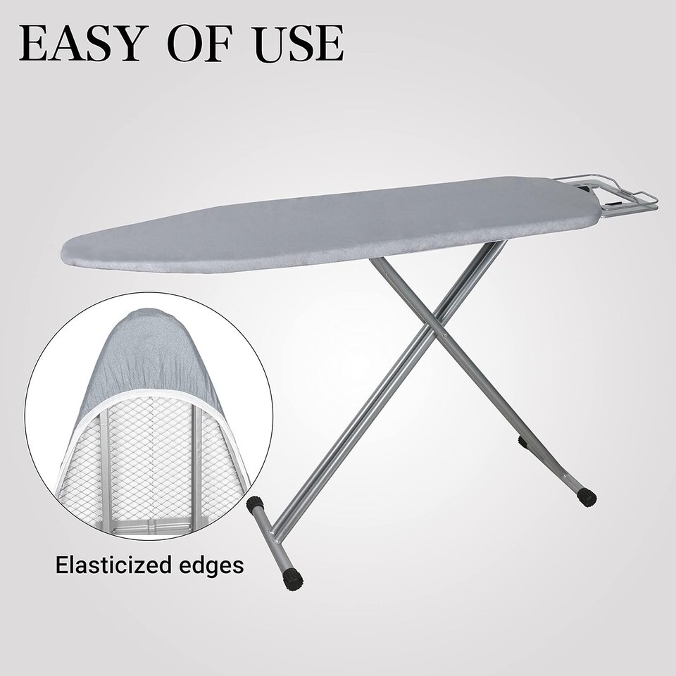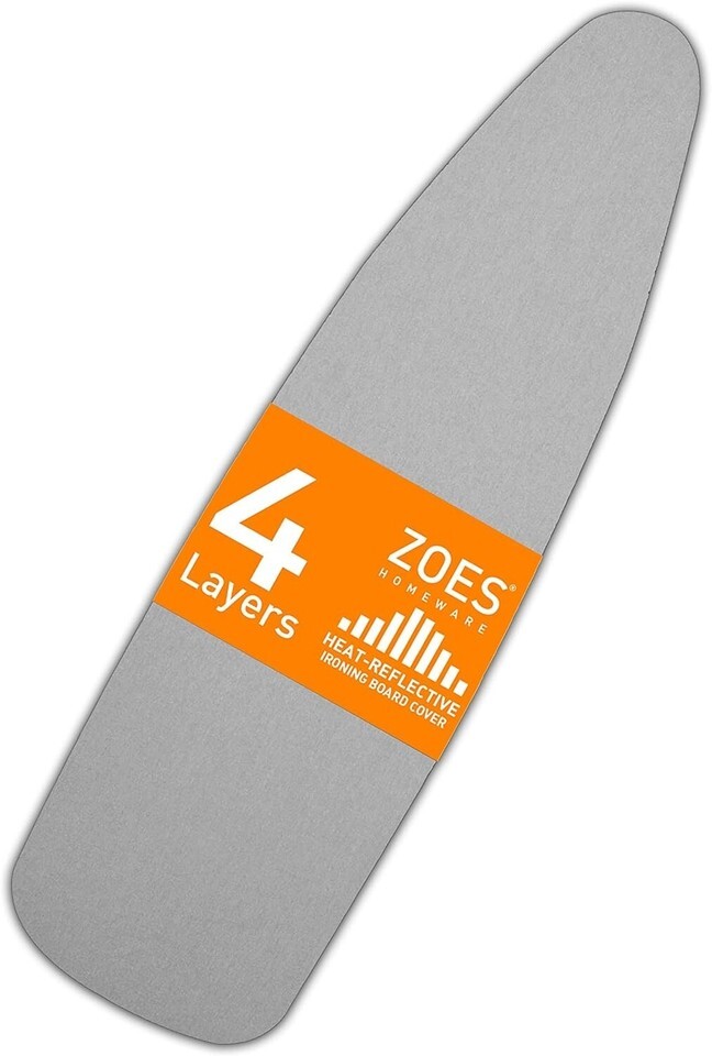 ?MATERIAL?: The ZOES HOMEWARE ironing board cover is designed to speed up your ironing time with its heat reflective technology. Made from 100% breathable cotton, it ensures a wrinkle-free and smooth finish. The pad is constructed with three layers of composite pure cotton interlayer with varying densities, and the pure cotton cover is covered with thousands of aluminum foil dots. This design can increase your ironing efficiency by 30-50% by reflecting heat.