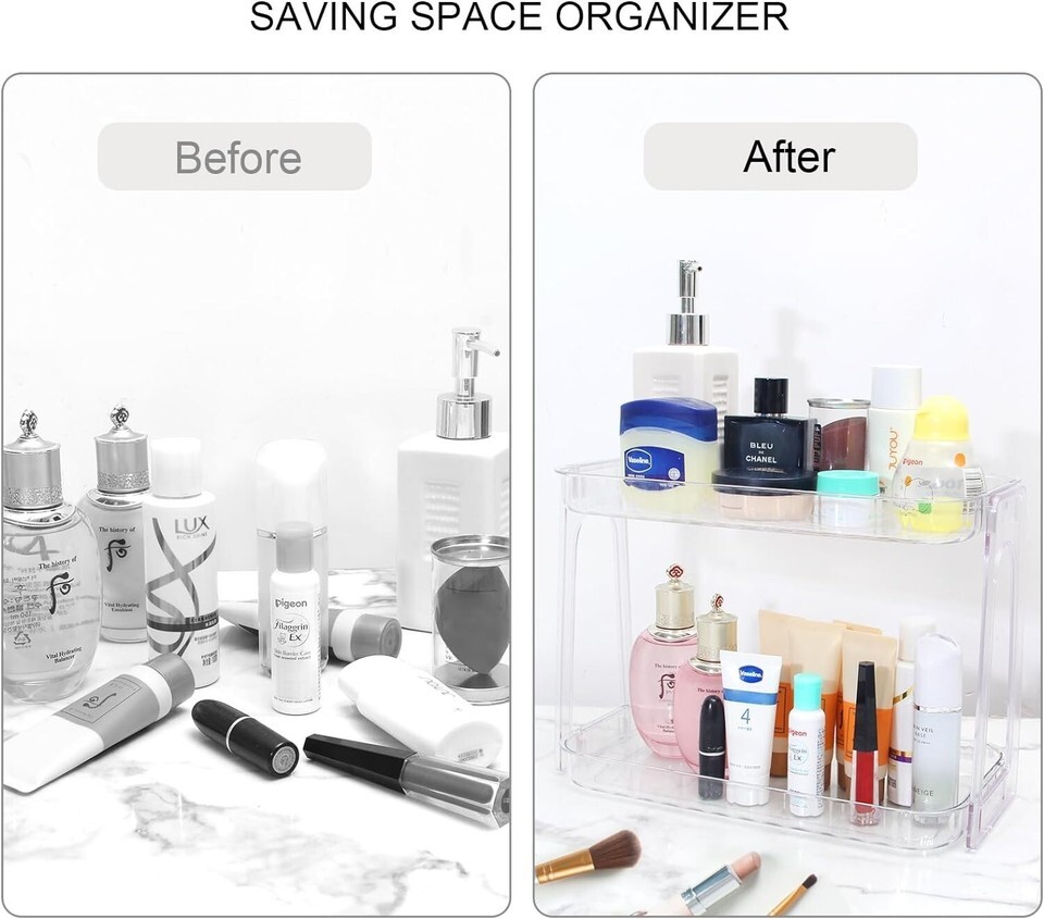 Bathroom Organizers and Storage, Clear 2-Tier Bathroom Plastic 6.3"D x 13"W x 9"
