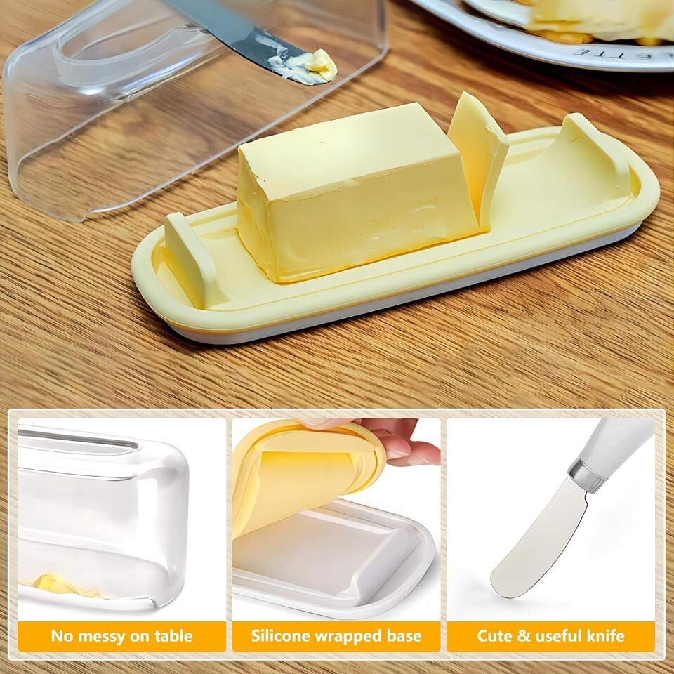 Fourmor Airtight Plastic Butter Dish with Lid and Knife Keep Butter Fresh