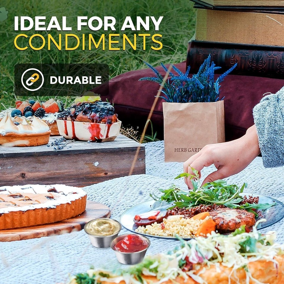 Easy to Clean: Ketchup cups reusable with a sleek, polished surface that repels food remnants facilitate effortless cleaning, allowing seasonings and sauces to easily come off. Moreover, these stainless steel condiment containers are not only hand-washable but also dishwasher-safe, alleviating your workload.