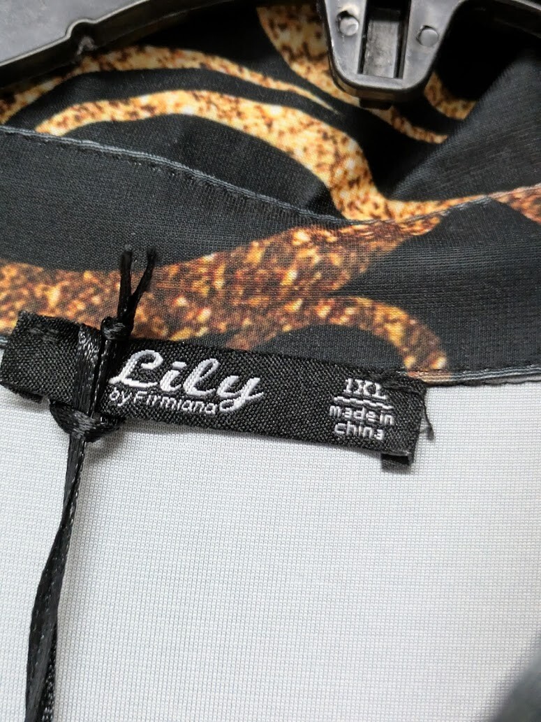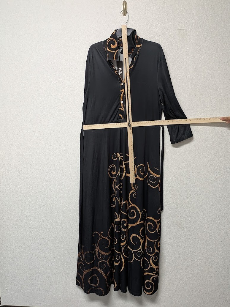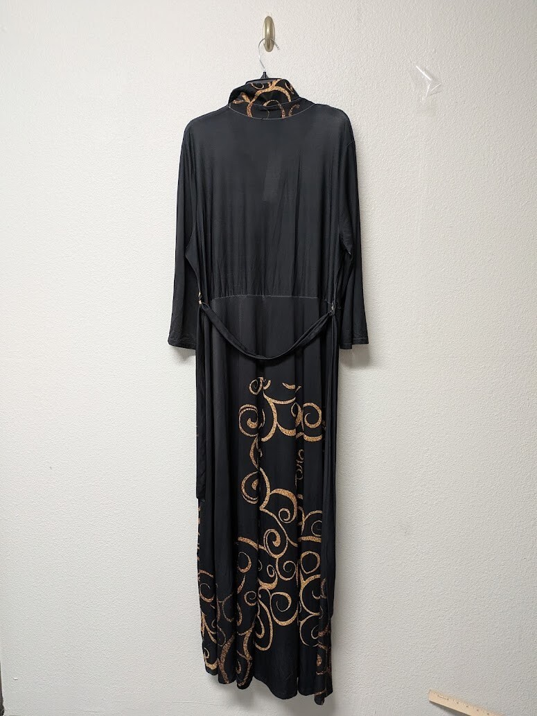Lily by Firmiana Long Dress Maxi Black & Gold Pattern Long Sleeves - 1XL