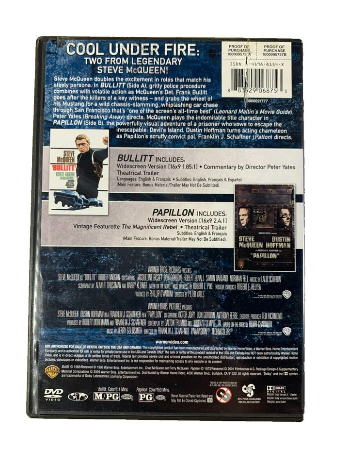 Steve McQueen Collection: Bullitt/Papillon (DVD, 2009): Action, Drama