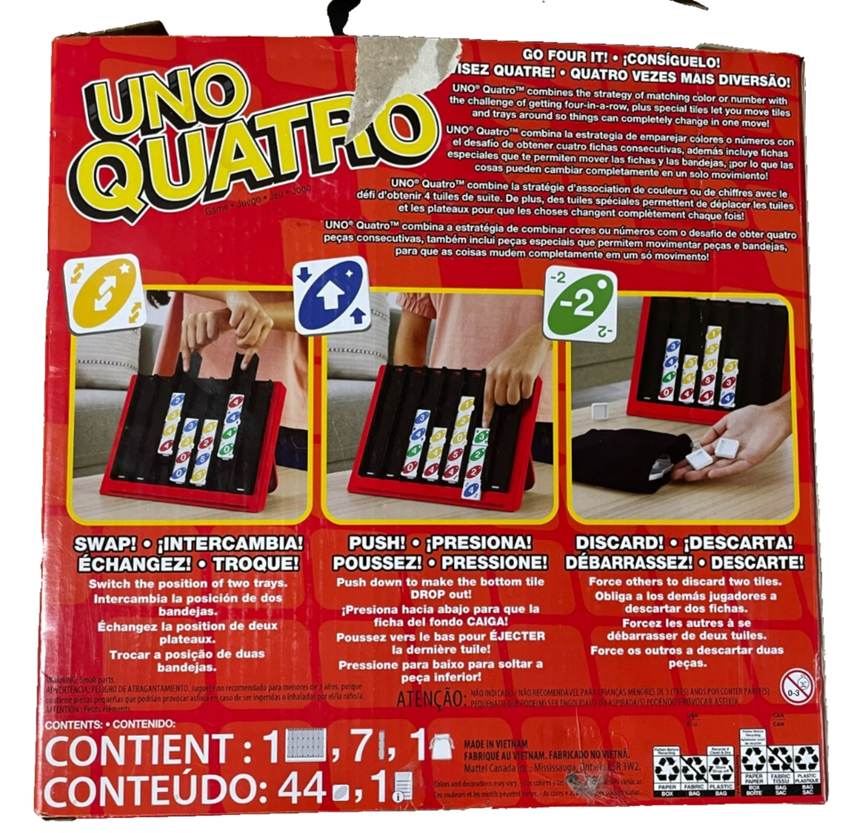 Uno Quatro Game Adult Family Game Night Mattel Board Game Strategy Ages 7+