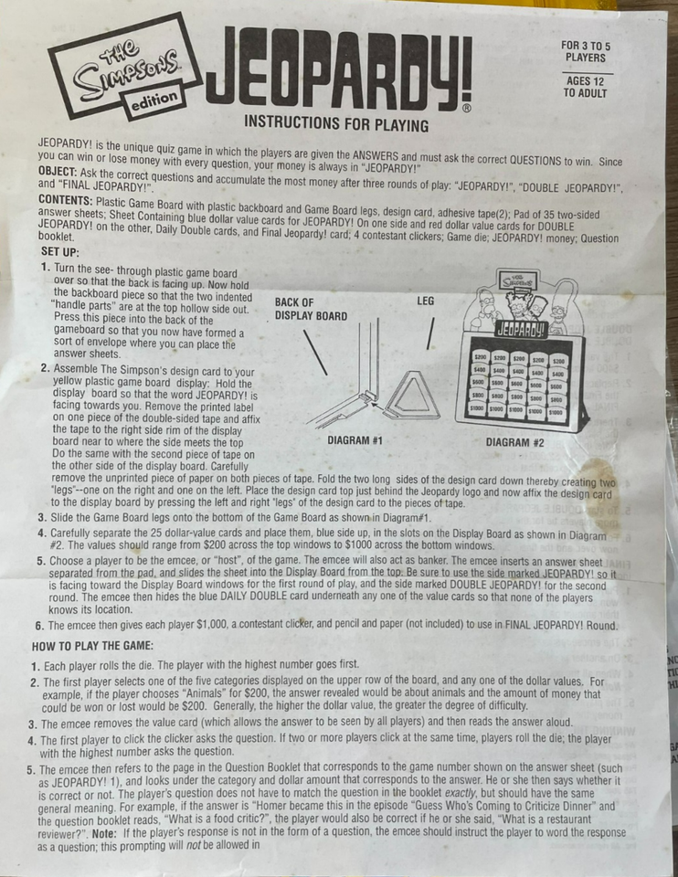 The Simpsons Jeopardy Board Game -Cartoon Game Show Family Game Night