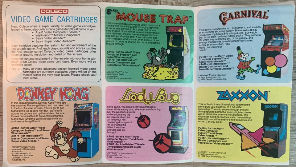 Vintage Video Game Advertisement Insert, Coleco Vision, Atari, Intellivision