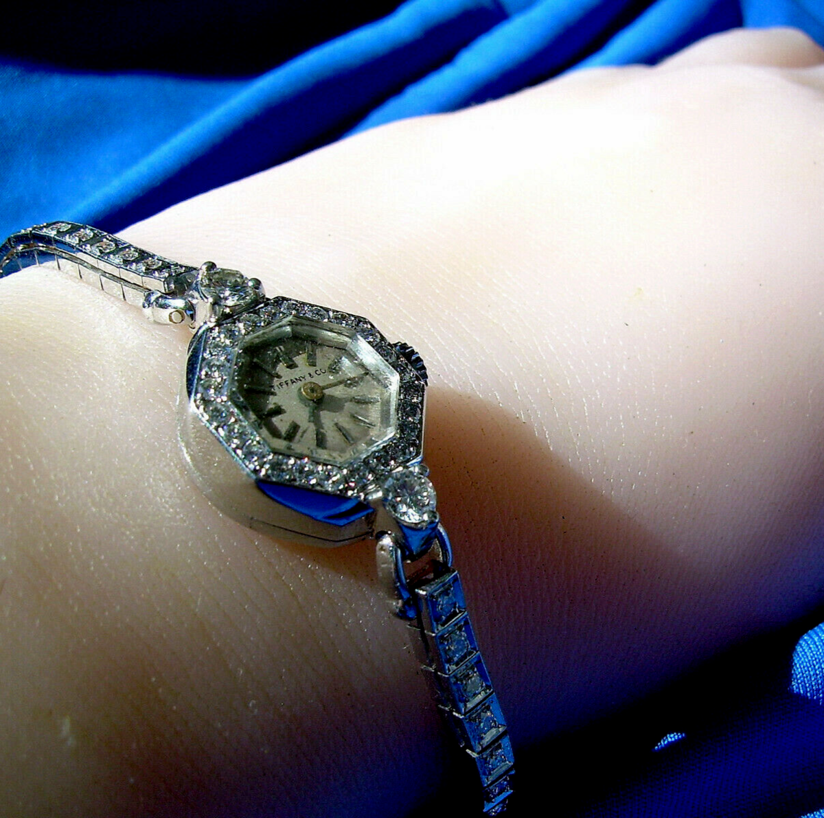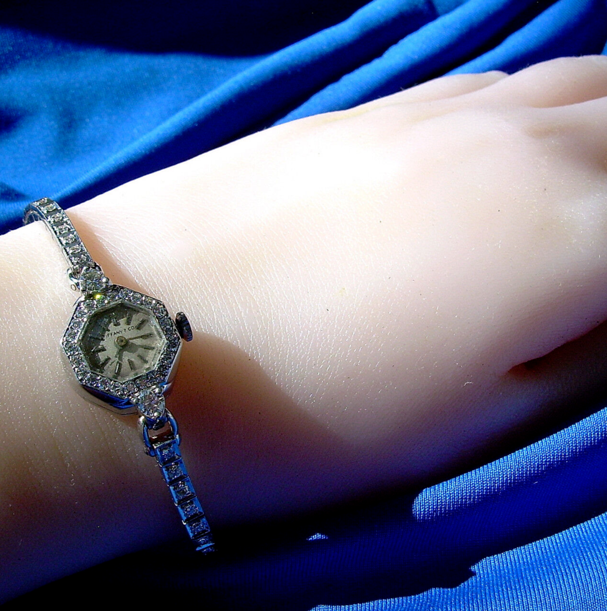 Tiffany co Diamond Platinum Deco Cocktail Watch Unique Vintage Hand made Case