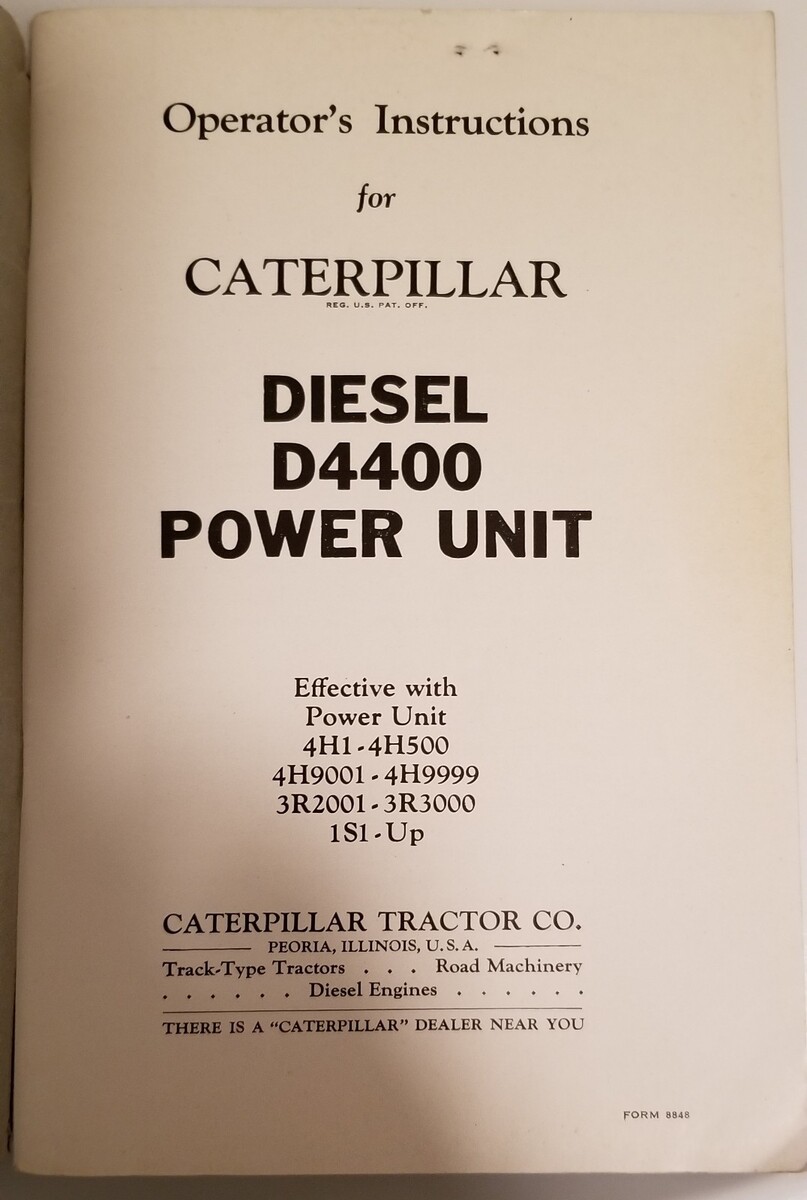 Original Caterpillar Cat D4400 Diesel Power Unit Owner Operator's Instruction Manual