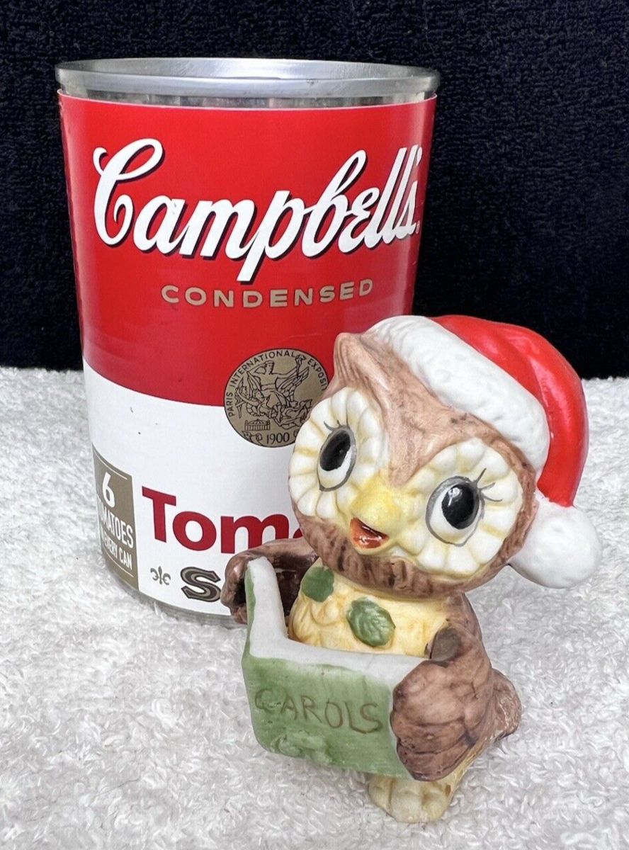 Vintage Christmas Owl Santa Hat Singing Carols Porcelain Figurine