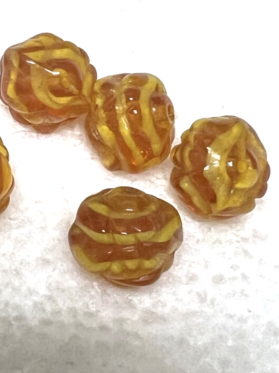 5 Vintage Art Glass Beads Honeycomb Colored Wavey 1/2" Rounds