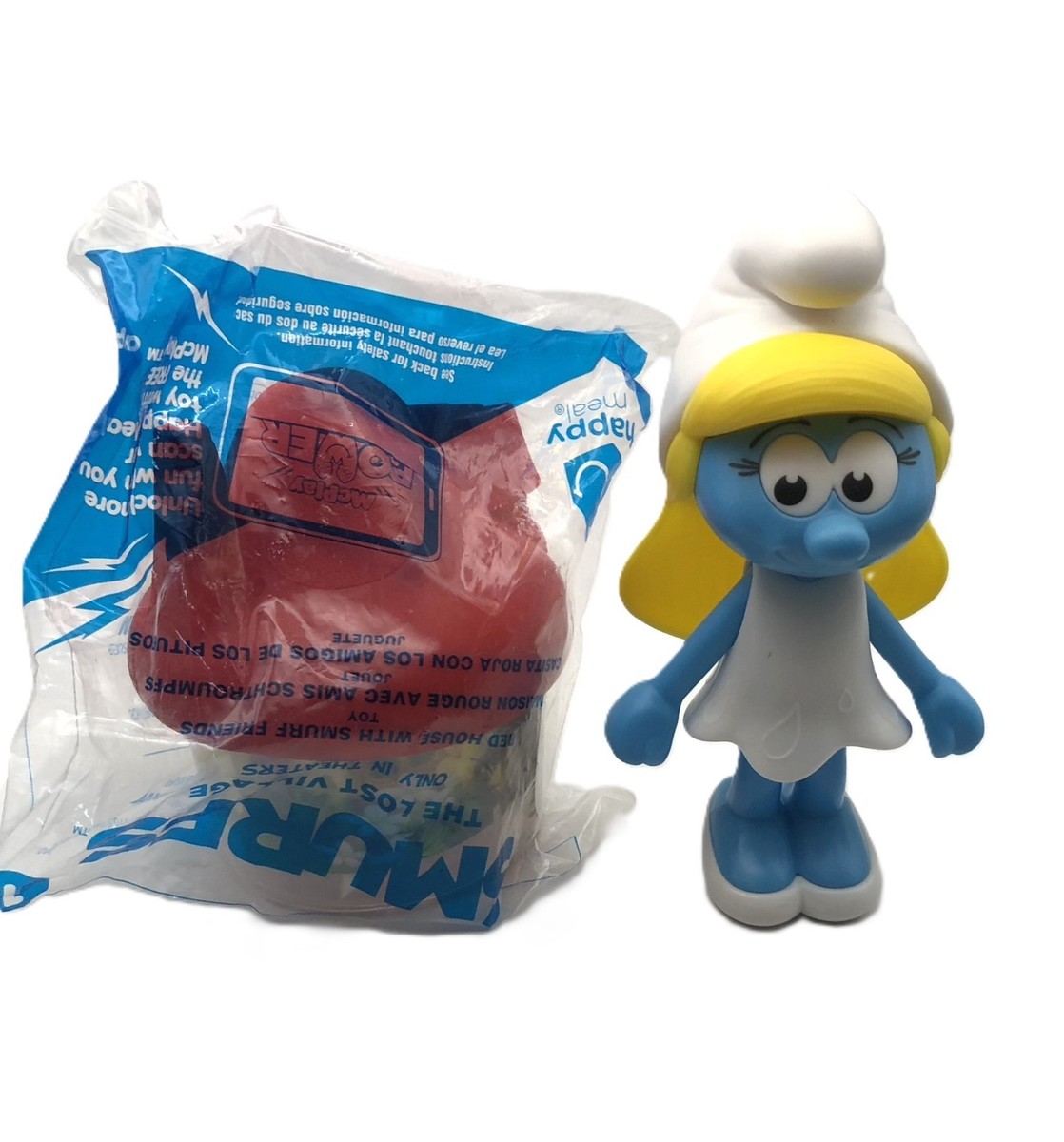 McDonald's Happy Meal Toys The Smurfs Mushroom House, Gutsy, Smurfette, Chef Jokey Smurf. The mushroom package does have a figure in it, I can't see it through the packaging and there is no name on the package. Toys are in good, clean, pre-owned, condition. I do have more happy meal toys and other toys available and calculated shipping is applied to cart when you purchase multiple items.