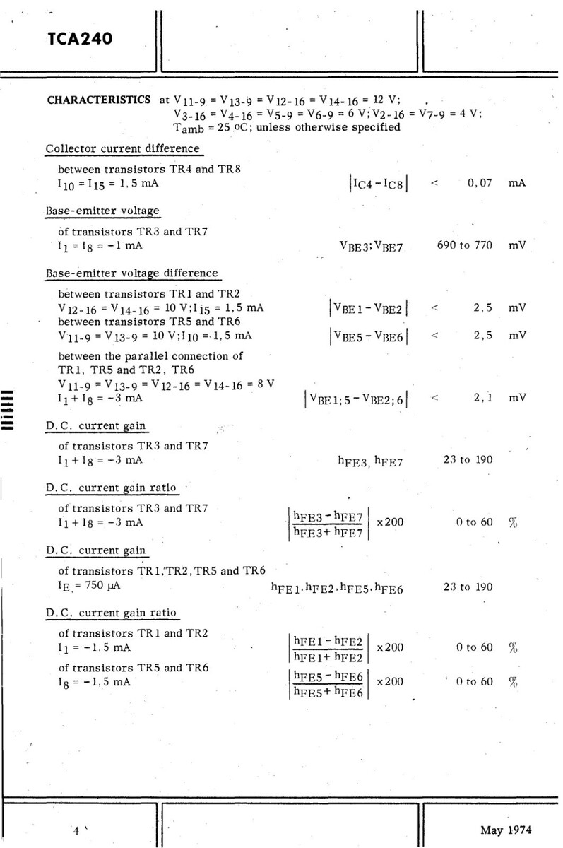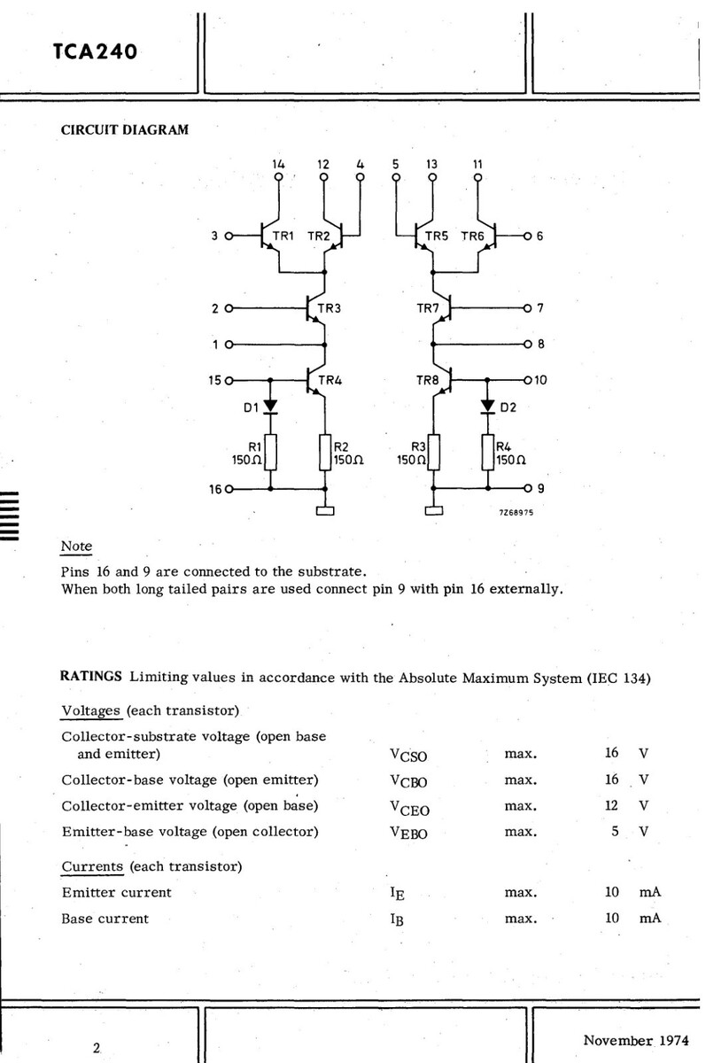 The TCA240 is a monolithic integrated circuit used primarily as a doubly balanced modulator/demodulator for general-purpose electronic applications.