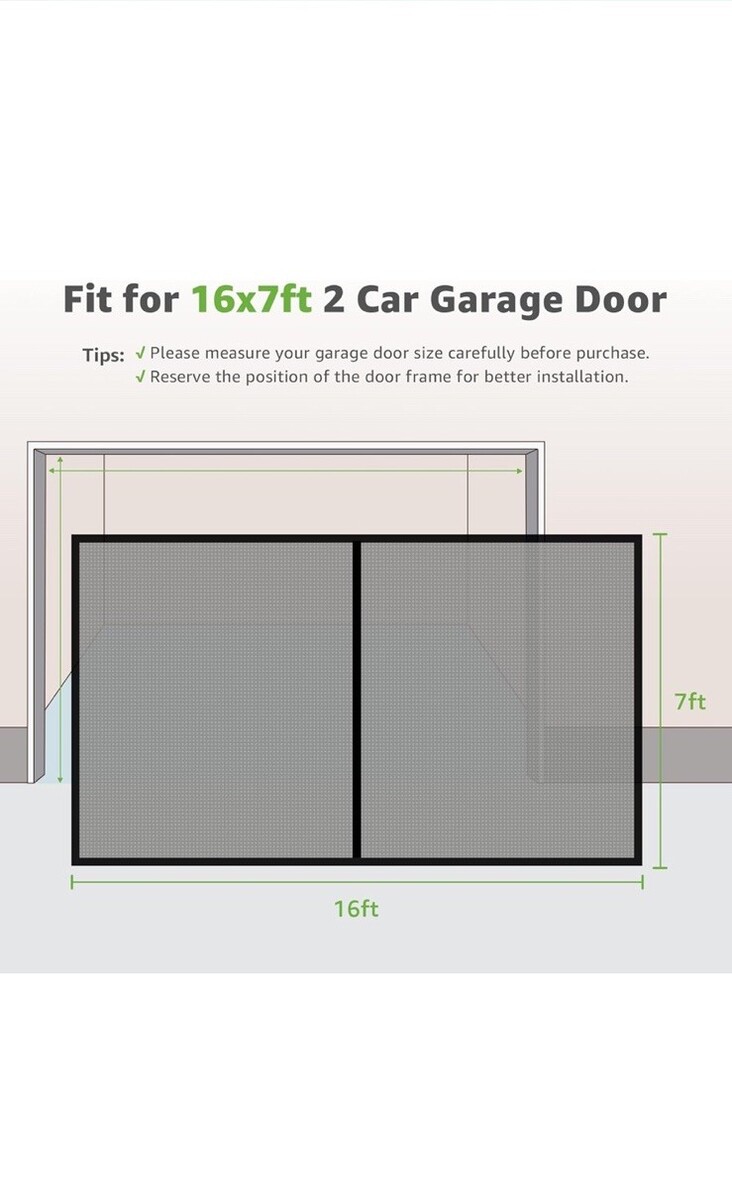 Magnetic Garage Door Screen 16 x 7ft for 2 Cars Heavy-Duty Garage Net Fiberglass