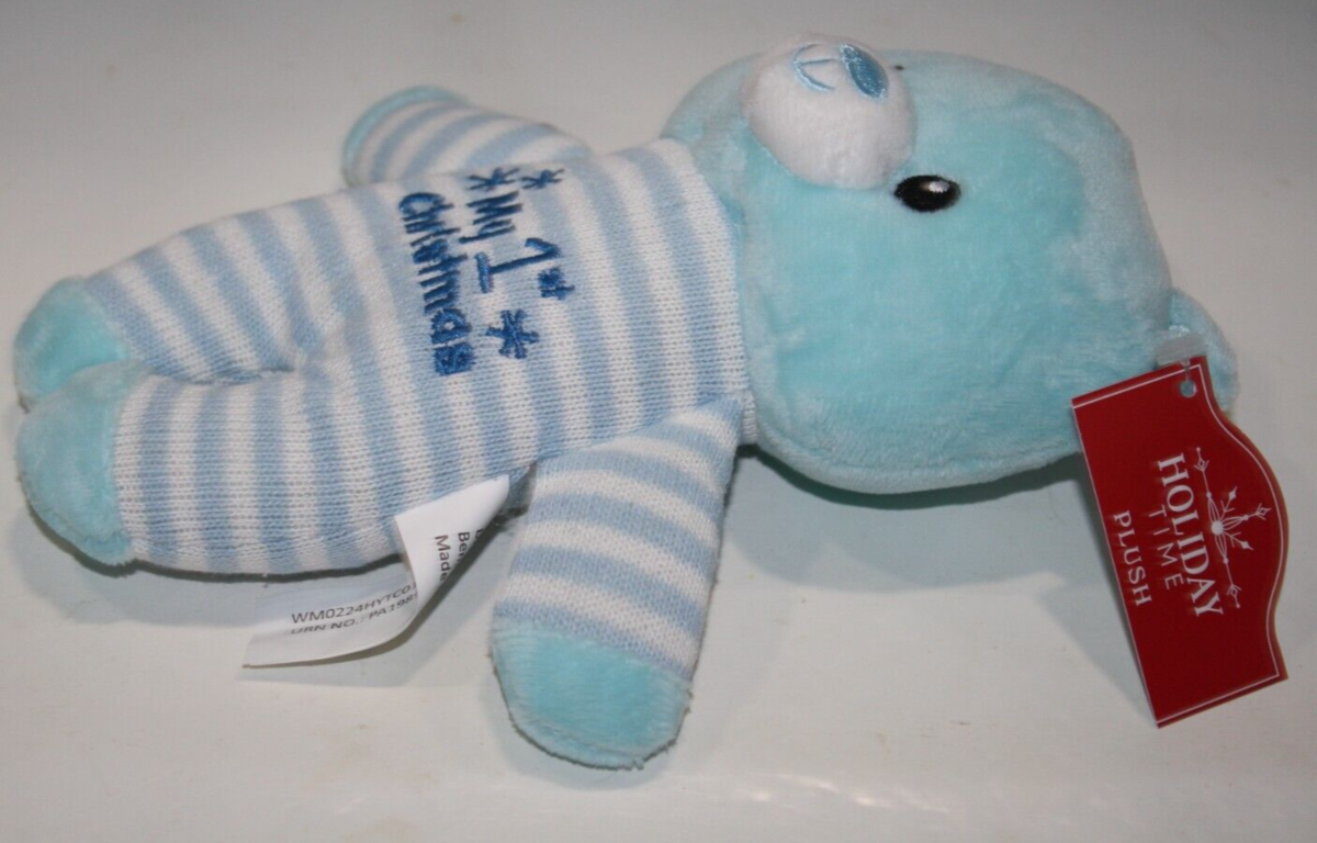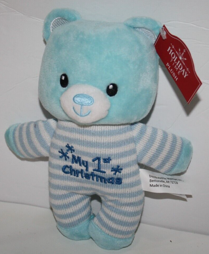 Walmart My 1st Christmas 8" Blue Baby Teddy Bear Striped Plush Stuffed Soft Toy