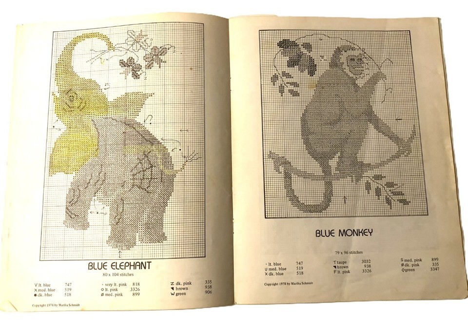 Nusery Animals by Martha Schmidt 12 Designs Instructions Cross Stitch 1981. The booklet/leaflet is in good clean, vintage condition. I do have other craft books at my shop and have calculated shipping set up for multiple purchases.