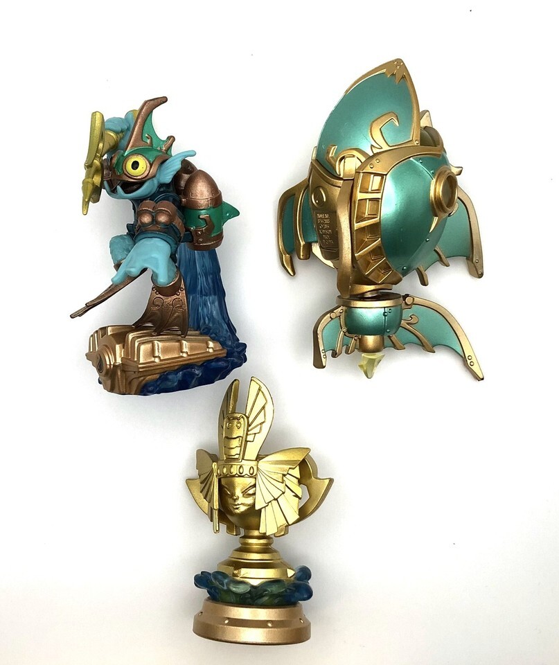 Skylanders SuperChargers Sea Racing Action Pack Deep Dive Gill Grunt Reef Ripper. There is no packaging just what you see in the pictures. The figures have been used and there may be minor wear, overall the items are in good clean condition. I have more Skylanders and Video game items listed and combined shipping is added to your cart when you purchase multiple items at my shop.