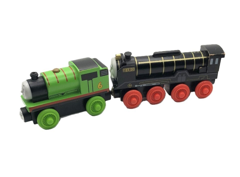 Thomas Friends Wooden Magnetic Trains Engines Hiro Percy Set of 2. Trains are in good, clean, pre-owned condition and do show a little wear from play. I do have more Thomas and other trains and offer combined shipping in cart.