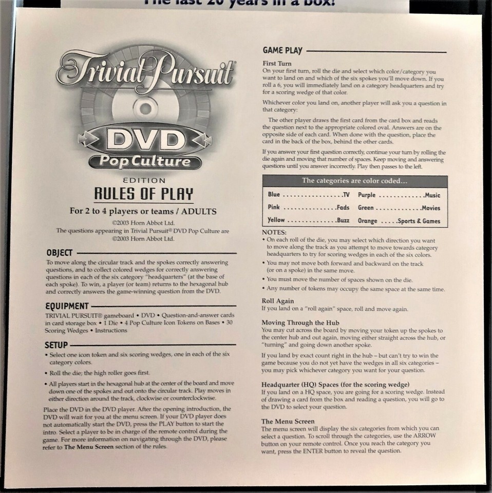 Trivial Pursuit DVD Pop Culture Board Game by Hasboro 2003