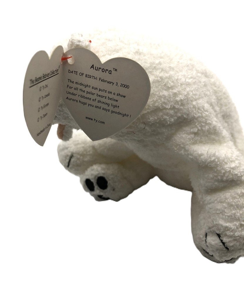 Ty Beanie plush toy animal. Beanie baby is in good, clean condition, just has wear on tag from storage. Still has tush tag and heart tag attached. Aurora is 8 inches long with a date of birth 2/3/2000.