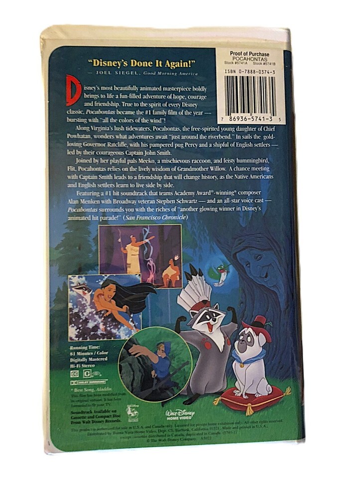 Walt Disney Masterpiece Pocahontas Pocahontas, 2 VHS Clamshell Cover tapes. The tapes and covers are in good clean pre-owned condition, the tapes have been tested and is in working condition. I do have more VHS tapes and calculated shipping is applied to cart when you purchase multiple items at my shop.