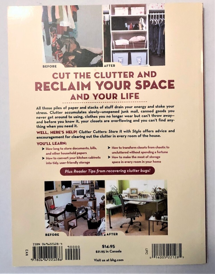 Better Homes Gardens Clutter Cutters Store With Style Hardcover. Book is in good, clean, pre-owned condition. Calculated shipping is applied to cart when you purchase multiple items. Check out my store for more items at C C Collections | Stores