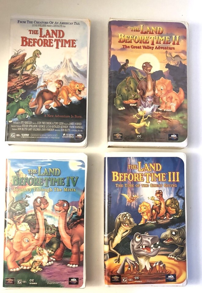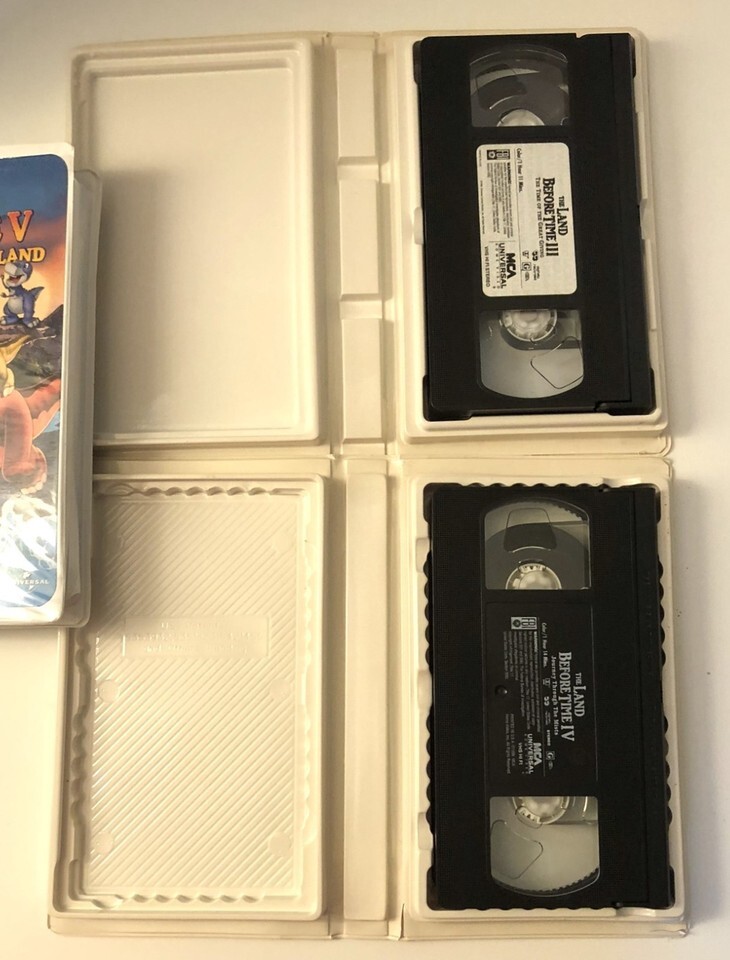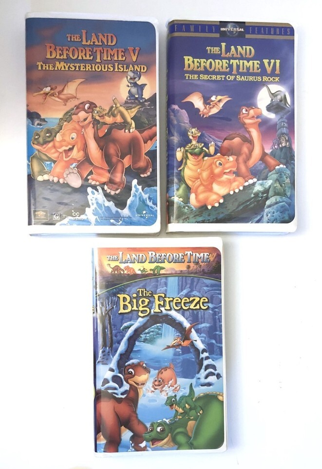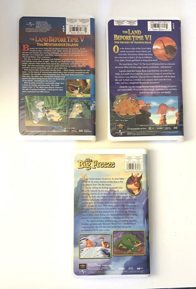The Land Before Time movies 1-6, plus The Big Freeze. The lot includes 7 clamshell VHS Tapes, that have been tested and all are working. The tapes and covers are in good clean pre-owned condition. I do have more VHS tapes and calculated shipping is applied to cart when you purchase multiple items at my shop.