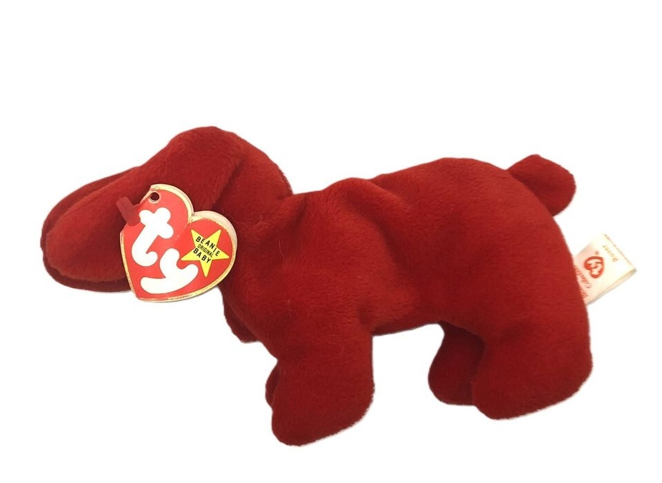Ty Beanie plush toy animal. Beanie baby is in good, clean condition, tag and toy may have some minor wear from storage. Still has tush tag and heart tag attached. Rover is 7 inches long with a date of birth 5/30/1996.